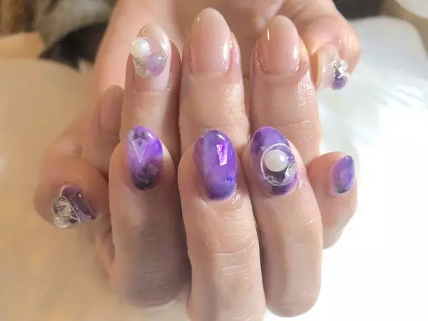 オールシーズン オフィス ブライダル 女子会 ハンド Tunashima Nailのネイルデザイン No ネイルブック ネイルデザイン パープル ネイル ネイル