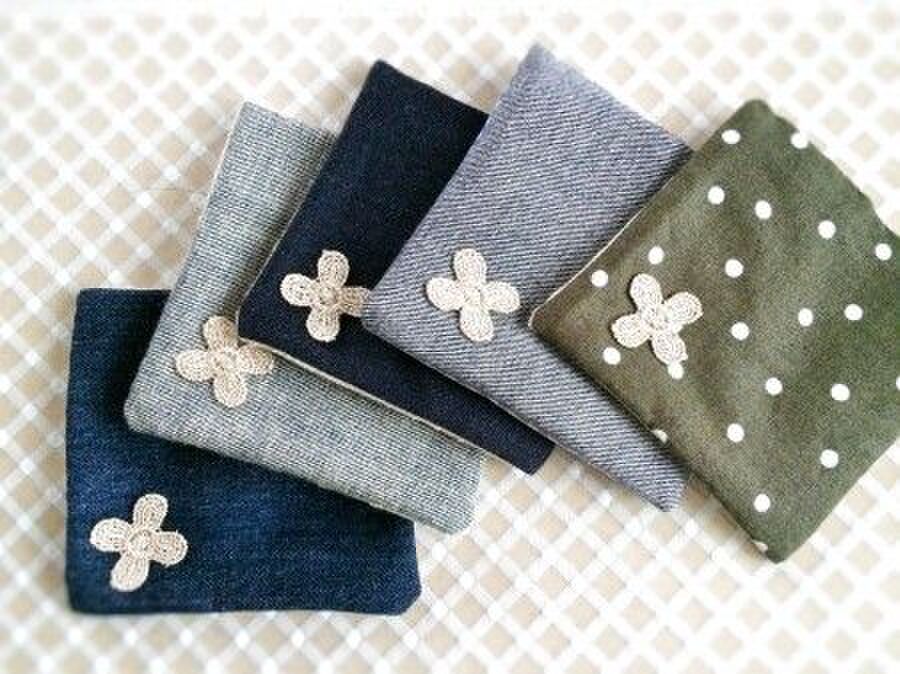 デニム生地のコースター5枚セット 小物入れ付 ハンドメイドマーケット Minne
