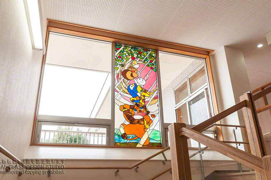 大阪府富田林市保育園階段踊り場 かわいいイメージのステンドグラス