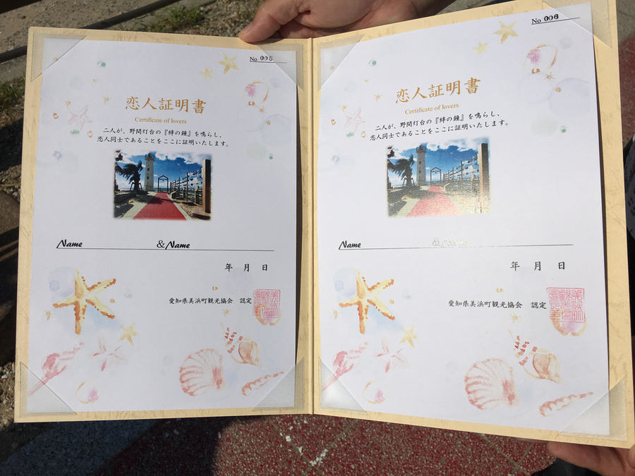 恋人宣言証明書 恋人の里 恋人岬 といに恋
